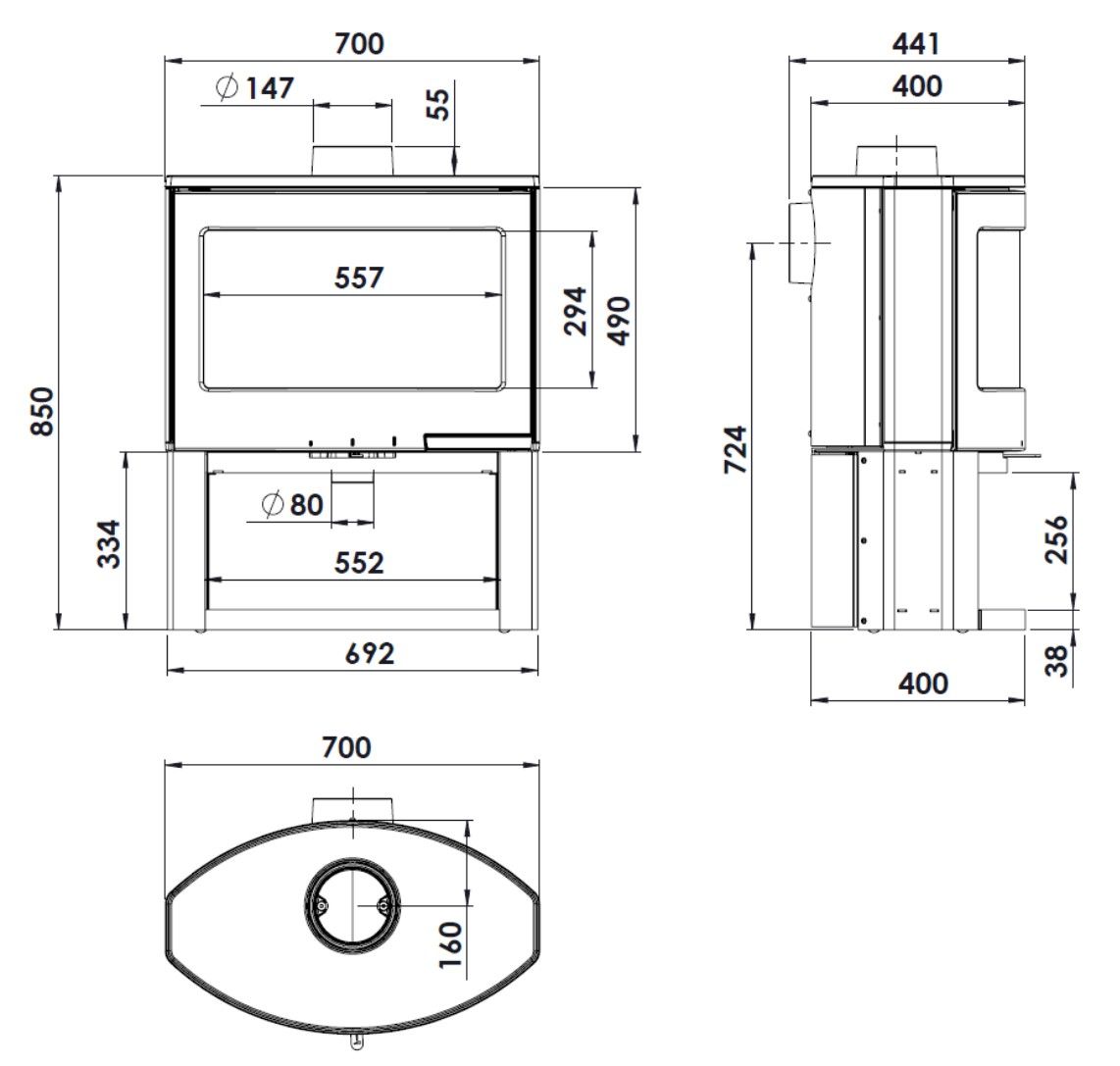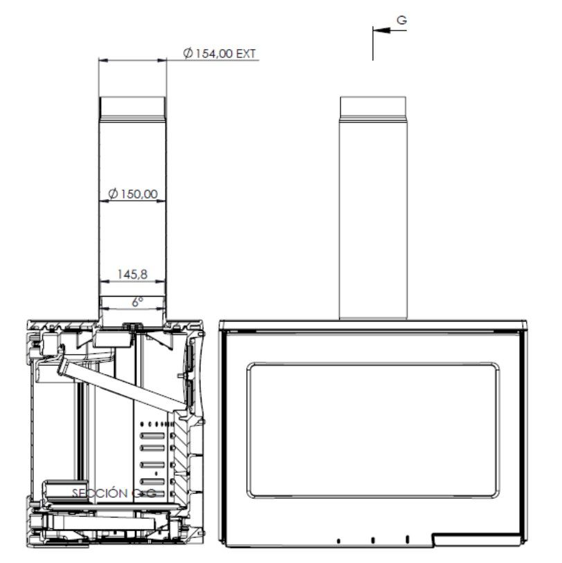 - Диаметр дымоходного патрубка: Ø150 мм